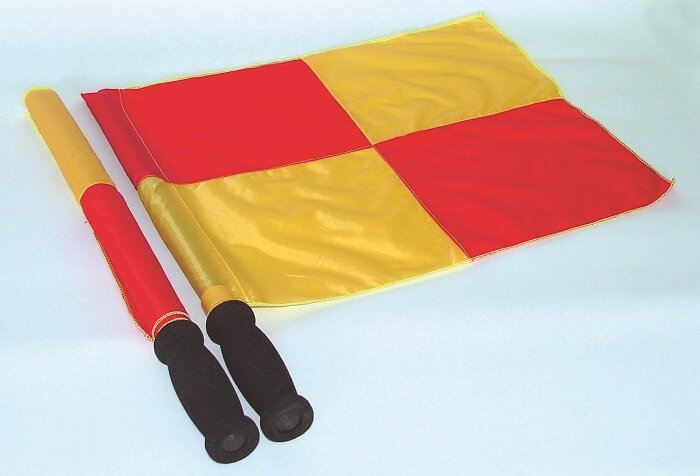 Pareja banderas amarilla juez de línea bicolor.
