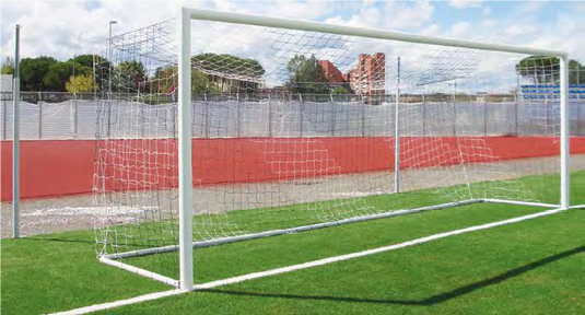Porterias fijas de fútbol aluminio extruido, de acuerdo con la norma UNI EN 748 con postes de sujeción traseros. Galvanizados.