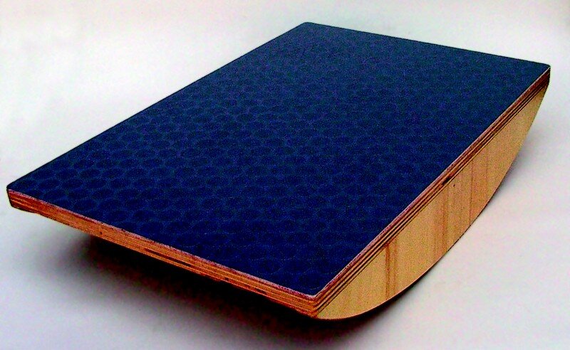 Tableta de Madera propioceptiva de media luna, el apoyo basado en 60x40 cm. con recubrimiento de goma antideslizante.