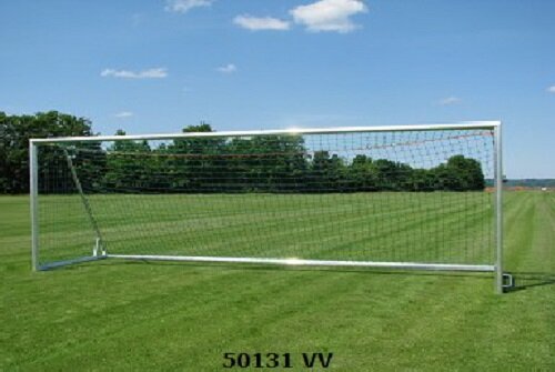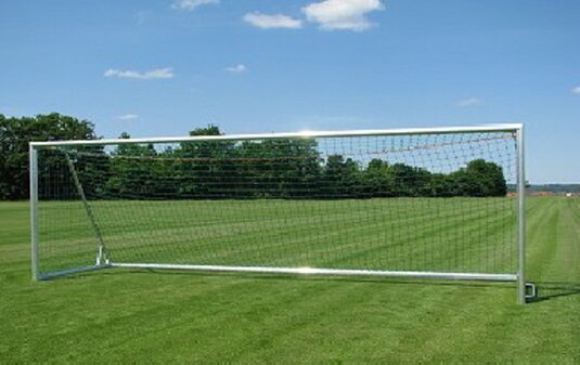 Juego de Porterias para fútbol de dimensiones oficiales de acuerdo a EN 748, modelo independiente portátil con base al suelo. Hecho de perfiles estables de acero reforzado, sección oval de 120x100 mm. Uniones de las esquinas reforzadas. Suministrado con base de aluminio con puntos de conexión para ruedas.