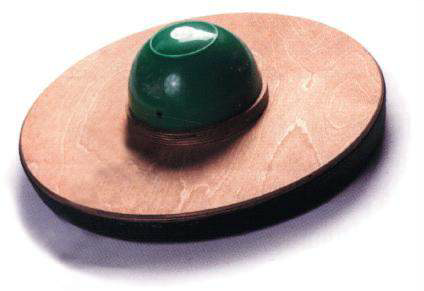 Tableta de gimnasia y rehabilitación que combina la inestabilidad del acolchado de espuma en la superficie de la mesa de madera con las propiedades de un hemisferio inflable.
