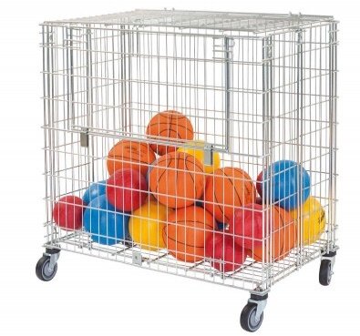 Su construcción duradera es ideal para el almacenamiento de las balones de los deportes y equipamiento deportivo. El bastidor base es estable. Construcción de alambre de acero galvanizado tiene barras adicionales y por su volumen de 600 litros hasta 50 pelotas de tenis. Las ruedas son de laminación sin dejar rastro.