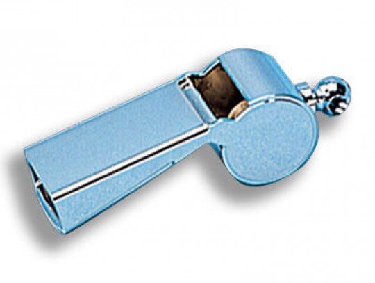 Silbato cromado con boquilla plana. tono alto y agudo.