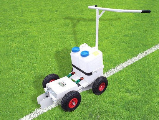 El Carro de Marcado de campos RB 1 asegura su presión de generación automática de la bomba para las líneas perfectas y uniformes en su césped. Es decir, por la corredera del carro de la presión la necesaria en la aplicación uniforme de la tinta y se genera utilizando la innovadora bomba de presión. El spray es de altura ajustable horizontalmente y flexible. Por lo tanto, dependiendo de su preferencia, el spray puede ser colocado en posición central o a los lados del borde del marco frontal. La anchura de las líneas de marcación también es completamente ajustable. Tiene 2 con una capacidad de 13 litros cada uno.