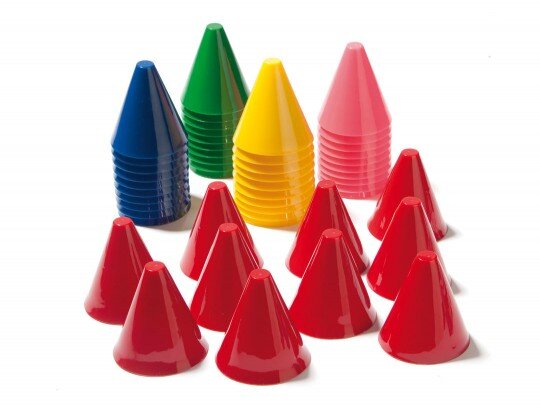 El conjunto es versátil en el deporte escolar, la formación del club o en deportes de ocio. El marcador conjunto conos se compone de un total de 50 conos, cada uno con 10 conos disponibles en rosa, rojo, verde, azul y amarillo. El nivel de los conos de marcador es de 7,5 cm. El diámetro en la base es de 7,5 cm.