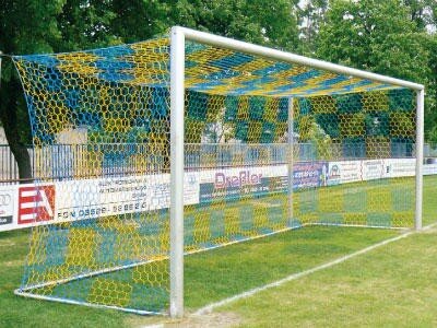Esta red de la portería visualmente hermosa y muy robusta de malla hexagonal o de nido de abeja. El tamaño de la malla es de aproximadamente 10-12 cm. El espesor del material de estas redes es de unos 3,5 mm. La Red están sin nudos y está hecho de polipropileno duradero (PP). Estas redes son apropiadas para todos las Porterías de un gran campo de fútbol, los 7,32 x tienen el tamaño estándar de 2,44 m.