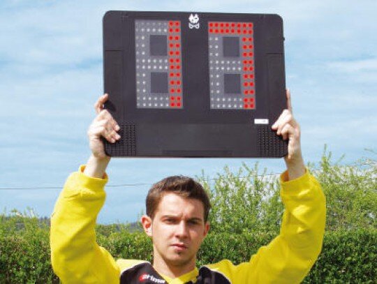 Pantalla LED muy visible en la parte frontal. Red-CONSTANT = OUT, roja intermitente = IN, botón de arranque, la batería integrada, cargador separado, incl. Publicitaria acoplable (19 x 48 cm). plástico ABS irrompible. anuncio unilateral!