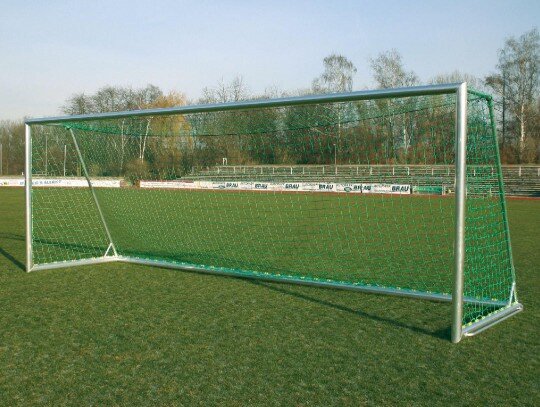 Este tipo de portería de fútbol está completamente soldadas y móvil, ideal para llevar a todas partes gracias a las asas soldadas lateralmente. Perfil ovalado de aluminio de 120 x 100 mm y debido a la elaboración de perfiles múltiples internos, muy rígida. Aluminio anodizado (plata). Los arcos de apoyo de la Red son la longitud del piso y está hecho de tubo redondo. Gracias al ángulo de esquina interna adicional (esquina robusta) esta portería de fútbol es particularmente estable y duradera. Tiene un ancla de tierra dispositivo antivuelco, que se incluye.
