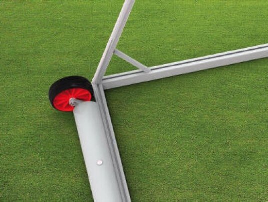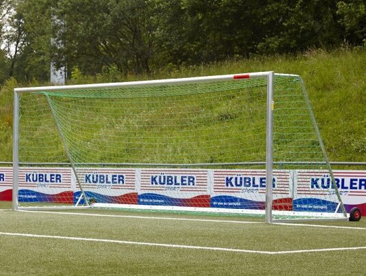 Antivuelco con un peso de seguridad para el llenado con arena de cuarzo, por ejemplo. Adecuado para el césped artificial, también para campos de césped natural. Las porterías de fútbol de seguridad son totalmente soldada y extremadamente robustas.
