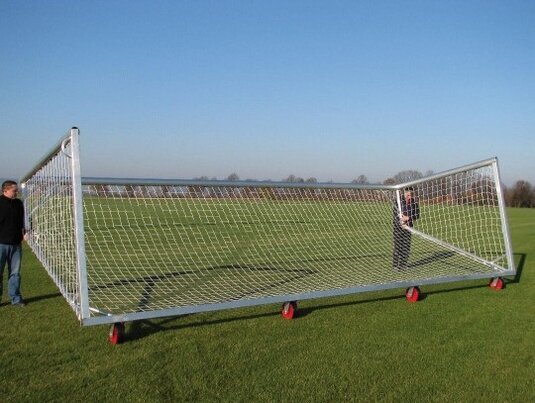Portería de fútbol sólido y portátil, que es gracias a sus ruedas ideales para césped artificial y pistas duras.