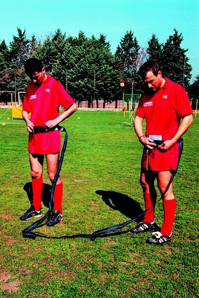 Más de velocidad a través de esta cintura elástica el atleta más rápido arrastra el más lento,