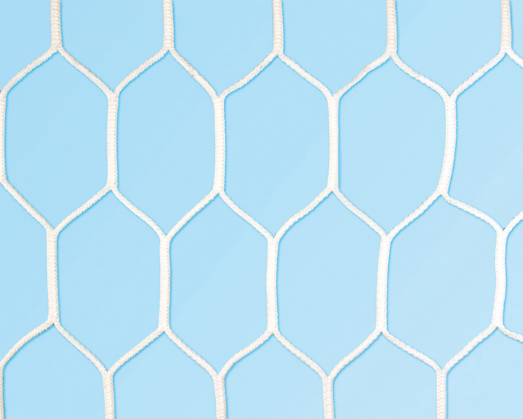 Juego Redes de fútbol, estándar, hechas de diámetro nylon 6 mm, profundidad 100/200 cm, malla hexagonal.