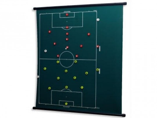 Nuestras tarjetas enseñanza del deporte que se adhieren magnéticamente y le dan la capacidad para trabajar tanto con iconos jugador magnéticos, así como con la tiza de la escuela normal. Ideal para su uso en las escuelas o de los entrenadores de fútbol. Está equipado con el dibujo de un campo de fútbol y se puede representar ejercicios tácticos o instrucciones visuales.