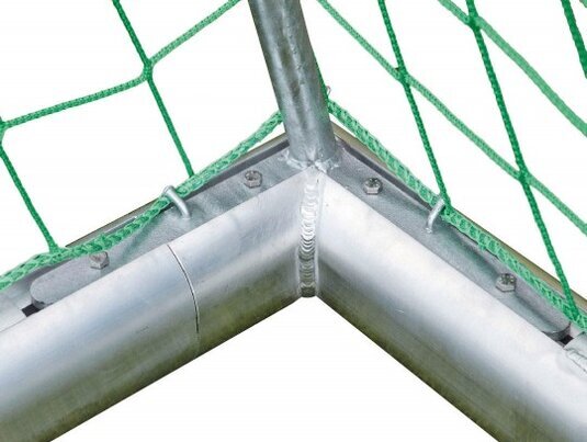 Móvil y las esquinas robustas de fútbol del entrenamiento extremadamente estable. Perfil oval 120 x 100 mm. El marco inferior de la Portería tiene el mismo perfil. Los ángulos de barras de esquina robusta interna y, por tanto, muy estable y duradera. La portería está anodizada de aluminio y tienen una profundidad de 80 cm por encima y 150 cm o 200 cm por debajo, dependiendo de la versión. También se sueldan asas de transporte y un anclaje de tierra antivuelco.