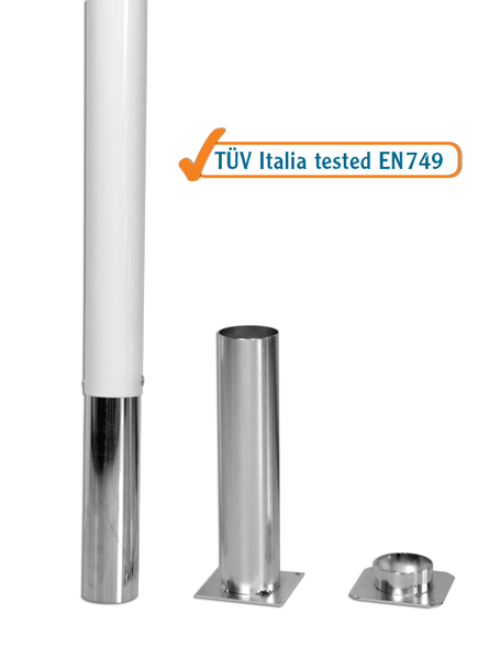 Juego de porterías de fútbol sala redonda de aluminio sección de 80 mm, dimensiones 300x200 cm, Anclajes incluidos.