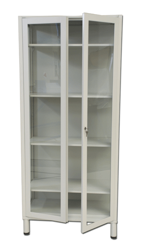 Armario de enfermería con dos puertas, cerradura tipo llave.