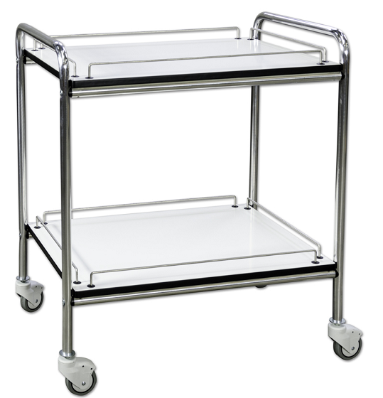 Carro con ruedas para enfermería, estructura con tiradores de aluminio, estantes de laminado por ambos lados, con los lados, tamaño de 60x40x80 cm.