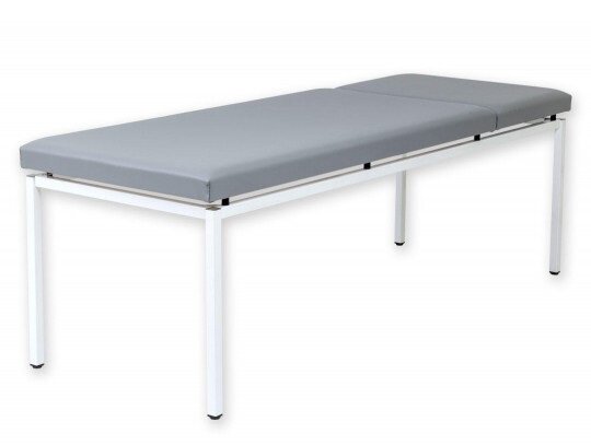 Marco robusto consiste en un perfil cuadrado de acero tubular y es de color blanco con pintura en polvo. El banco reclinable se caracteriza a 170 cargas kg de peso corporal. La cabecera se puede ajustar positivamente por medio de una rejilla en etapas.